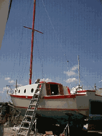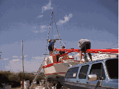 Nobody asked to see this picture - but this is of the guys getting the thing up!! I have to thank Bob, Earl and Tom - for all their knowledge, ability and willingness to help me!! Also, a friend visiting from North Dakota, Ron Johnson. Ron got an education he wasn't counting on!!!